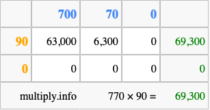 Below is an illustration showing you how to calculate 770 times 90 using the box method, using the instructions above.