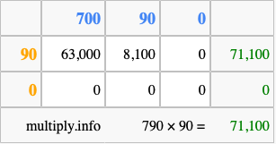 Below is an illustration showing you how to calculate 790 times 90 using the box method, using the instructions above.