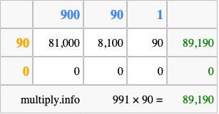 Below is an illustration showing you how to calculate 991 times 90 using the box method, using the instructions above.