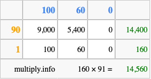 Finally, we add up all the sums we found in step 3 to get our final answer to 160 times 91.
