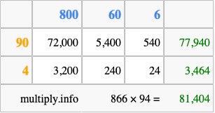Finally, we add up all the sums we found in step 3 to get our final answer to 866 times 94.