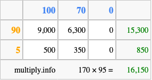 Finally, we add up all the sums we found in step 3 to get our final answer to 170 times 95.