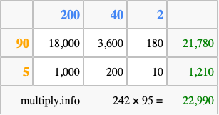 Finally, we add up all the sums we found in step 3 to get our final answer to 242 times 95.