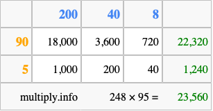 Finally, we add up all the sums we found in step 3 to get our final answer to 248 times 95.