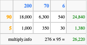 Finally, we add up all the sums we found in step 3 to get our final answer to 276 times 95.
