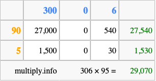 Finally, we add up all the sums we found in step 3 to get our final answer to 306 times 95.