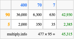 Below is an illustration showing you how to calculate 477 times 95 using the box method, using the instructions above.