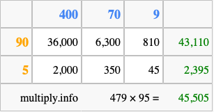 Finally, we add up all the sums we found in step 3 to get our final answer to 479 times 95.