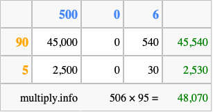 Below is an illustration showing you how to calculate 506 times 95 using the box method, using the instructions above.