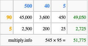 Finally, we add up all the sums we found in step 3 to get our final answer to 545 times 95.