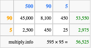 Finally, we add up all the sums we found in step 3 to get our final answer to 595 times 95.