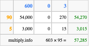 Finally, we add up all the sums we found in step 3 to get our final answer to 603 times 95.