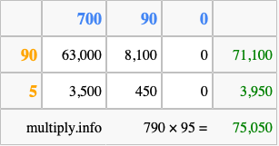 Finally, we add up all the sums we found in step 3 to get our final answer to 790 times 95.