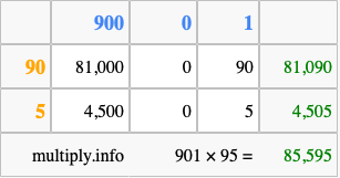 Finally, we add up all the sums we found in step 3 to get our final answer to 901 times 95.