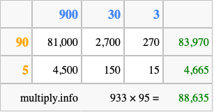 That's all there is to it! As you can see from the box above, the answer to 933 times 95 using the box method is 88,635.