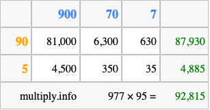 Below is an illustration showing you how to calculate 977 times 95 using the box method, using the instructions above.