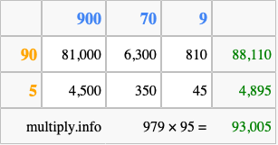Finally, we add up all the sums we found in step 3 to get our final answer to 979 times 95.