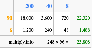 Finally, we add up all the sums we found in step 3 to get our final answer to 248 times 96.