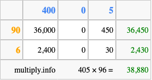 Finally, we add up all the sums we found in step 3 to get our final answer to 405 times 96.