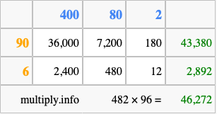 Finally, we add up all the sums we found in step 3 to get our final answer to 482 times 96.