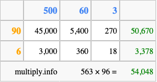 Below is an illustration showing you how to calculate 563 times 96 using the box method, using the instructions above.