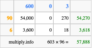 Finally, we add up all the sums we found in step 3 to get our final answer to 603 times 96.