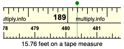 15.76 feet times 12 equals 189.12 inches. Therefore, 15.76 feet is at the 189.12 inches place on the tape measure, as displayed below.