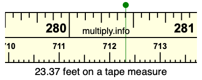 23.37 feet times 12 equals 280.44 inches. Therefore, 23.37 feet is at the 280.44 inches place on the tape measure, as displayed below.