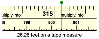 26.26 feet times 12 equals 315.12 inches. Therefore, 26.26 feet is at the 315.12 inches place on the tape measure, as displayed below.
