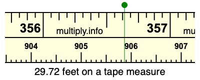 29.72 feet times 12 equals 356.64 inches. Therefore, 29.72 feet is at the 356.64 inches place on the tape measure, as displayed below.