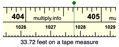 33.72 feet times 12 equals 404.64 inches. Therefore, 33.72 feet is at the 404.64 inches place on the tape measure, as displayed below.