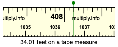 34.01 feet times 12 equals 408.12 inches. Therefore, 34.01 feet is at the 408.12 inches place on the tape measure, as displayed below.