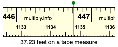 37.23 feet times 12 equals 446.76 inches. Therefore, 37.23 feet is at the 446.76 inches place on the tape measure, as displayed below.
