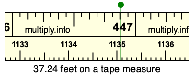 37.24 feet times 12 equals 446.88 inches. Therefore, 37.24 feet is at the 446.88 inches place on the tape measure, as displayed below.