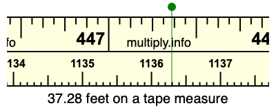 37.28 feet times 12 equals 447.36 inches. Therefore, 37.28 feet is at the 447.36 inches place on the tape measure, as displayed below.