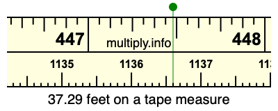 37.29 feet times 12 equals 447.48 inches. Therefore, 37.29 feet is at the 447.48 inches place on the tape measure, as displayed below.