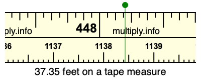 37.35 feet times 12 equals 448.2 inches. Therefore, 37.35 feet is at the 448.2 inches place on the tape measure, as displayed below.