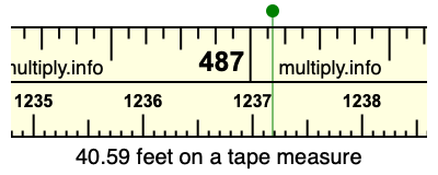 40.59 feet times 12 equals 487.08 inches. Therefore, 40.59 feet is at the 487.08 inches place on the tape measure, as displayed below.