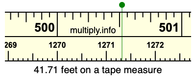 41.71 feet times 12 equals 500.52 inches. Therefore, 41.71 feet is at the 500.52 inches place on the tape measure, as displayed below.