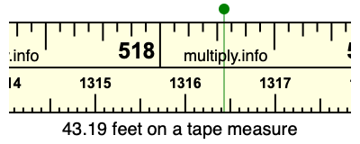 43.19 feet times 12 equals 518.28 inches. Therefore, 43.19 feet is at the 518.28 inches place on the tape measure, as displayed below.