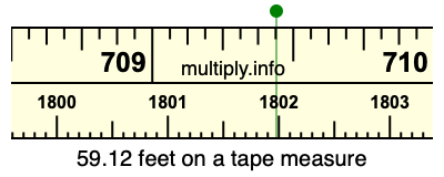 59.12 feet times 12 equals 709.44 inches. Therefore, 59.12 feet is at the 709.44 inches place on the tape measure, as displayed below.