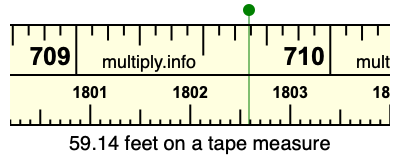 59.14 feet times 12 equals 709.68 inches. Therefore, 59.14 feet is at the 709.68 inches place on the tape measure, as displayed below.