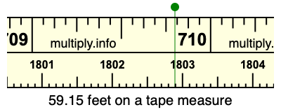 59.15 feet times 12 equals 709.8 inches. Therefore, 59.15 feet is at the 709.8 inches place on the tape measure, as displayed below.