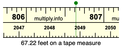 67.22 feet times 12 equals 806.64 inches. Therefore, 67.22 feet is at the 806.64 inches place on the tape measure, as displayed below.