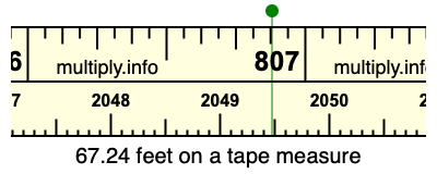 67.24 feet times 12 equals 806.88 inches. Therefore, 67.24 feet is at the 806.88 inches place on the tape measure, as displayed below.