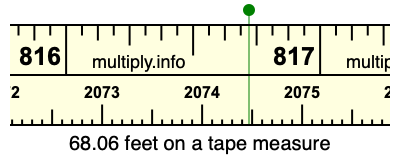 68.06 feet times 12 equals 816.72 inches. Therefore, 68.06 feet is at the 816.72 inches place on the tape measure, as displayed below.