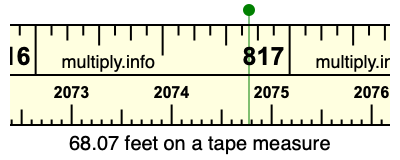 68.07 feet times 30.48 equals 2074.7736 centimeters. Therefore, 68.07 feet is also at the 2074.7736 centimeters place on the tape measure, as displayed above.