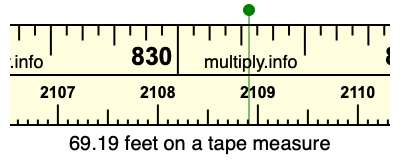 69.19 feet times 30.48 equals 2108.9112 centimeters. Therefore, 69.19 feet is also at the 2108.9112 centimeters place on the tape measure, as displayed above.