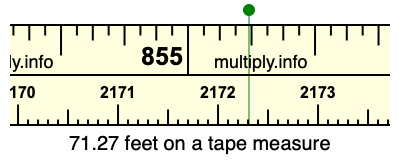 71.27 feet times 12 equals 855.24 inches. Therefore, 71.27 feet is at the 855.24 inches place on the tape measure, as displayed below.