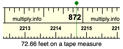 72.66 feet times 12 equals 871.92 inches. Therefore, 72.66 feet is at the 871.92 inches place on the tape measure, as displayed below.